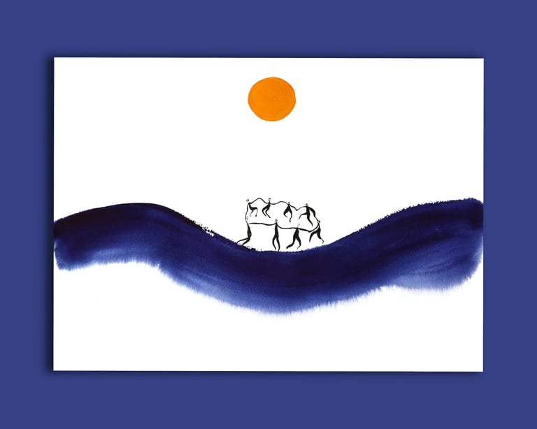 Peinture originale à l'encre et encre de chine imprimée sur papier Rives Tradition Blanc Naturel 250 G